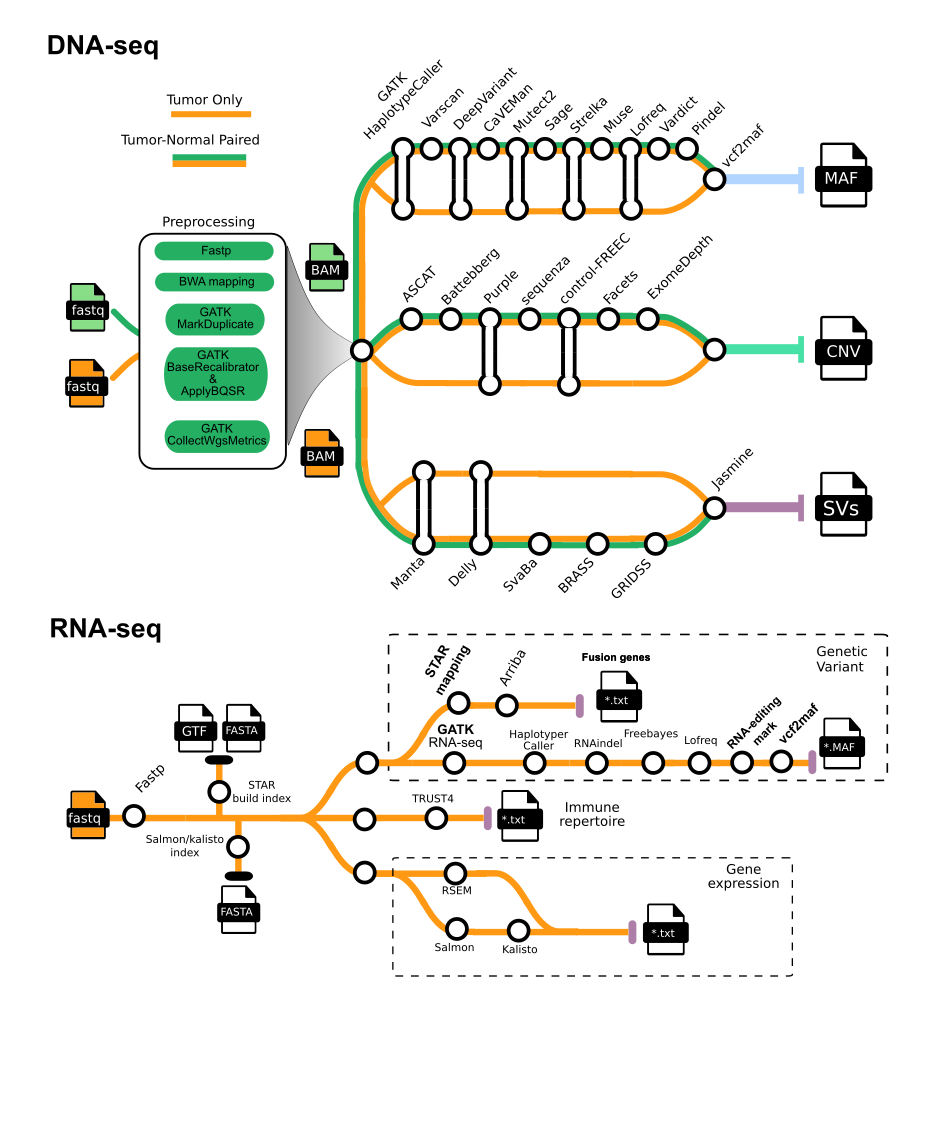 SNV, MNV, INDEL calling: (SAGE, HaplotypeCaller, Mutect2, Strelka, CaVEMan, Varscan, Muse, Pindel )